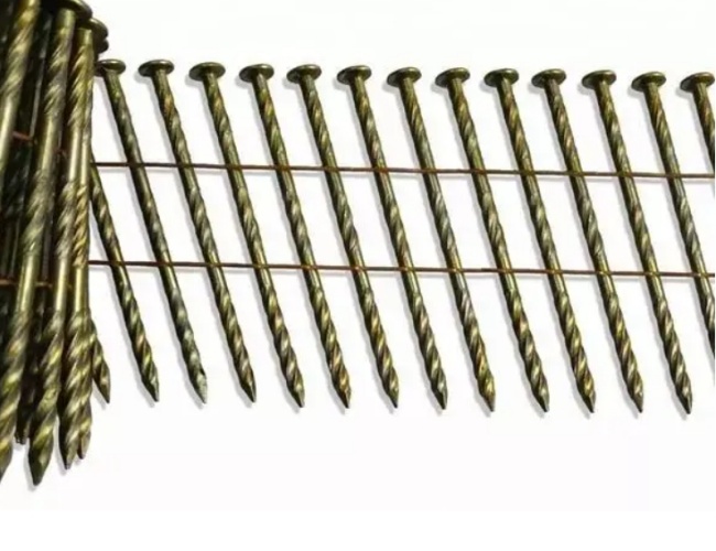 Coil nail is a special type of fastener, consisting of several single nails of the same size arranged together at equal distances and angles. The connectors can be iron wires, and the nails are usually arranged at an angle of 15°, and then rolled into a roll for packaging and use. We can provide 3 types of shank coil nails: smooth shank coil nail, ring shank coil nail, screw shank coil nail. There is also the option of dipping paint.