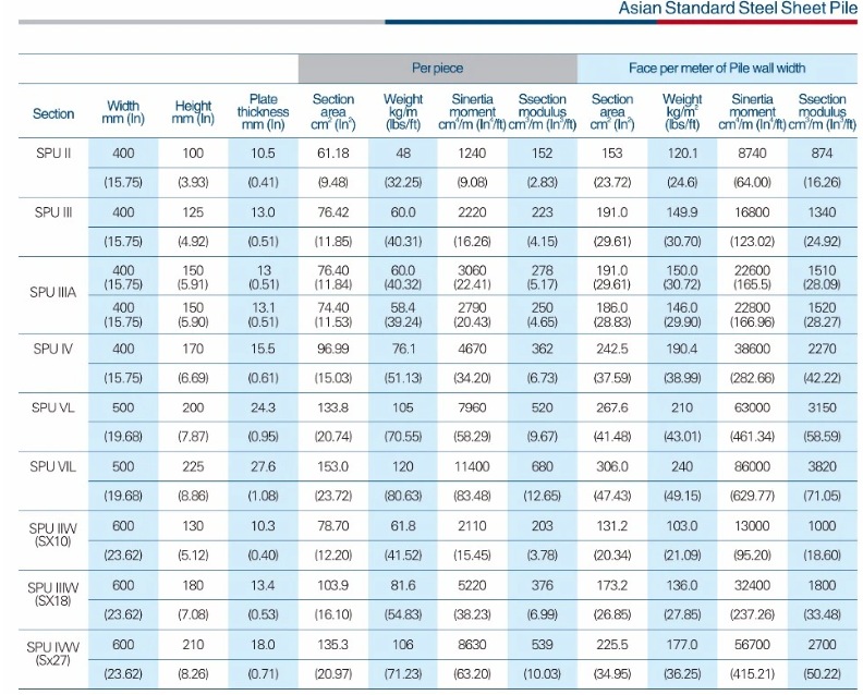 Hot rolled steel sheet pile for construction
